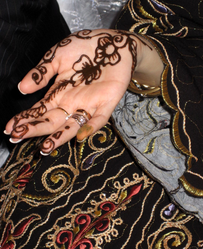 Over the holidays the first of the 'big girls" got married. I've known Nadine since she was a very little girl. Like my husband she is Lebanese and so a big Lebanese wedding was in order. The night before the wedding the women throw a Henna Party. Here, the bride gets to eat, dance, and have henna decorations put on her hands for her wedding the next day. It is so fun to go to one of these parties and totally mesmerizing to watch the henna being placed on the hands.