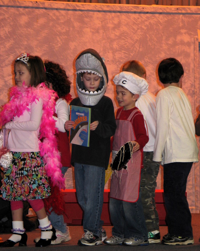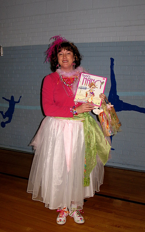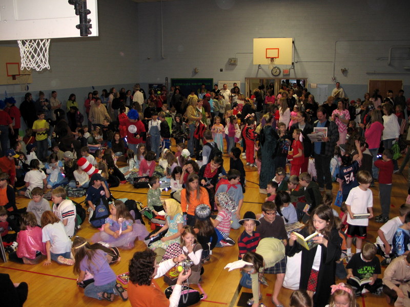 In our school, every Friday we gather as a school and family community in something which is called "Family Gathering". During Children's Book Festival Week we had all of our school and family members dress as their favorite book characters, carry a copy of the book, and join our Parade of Books.