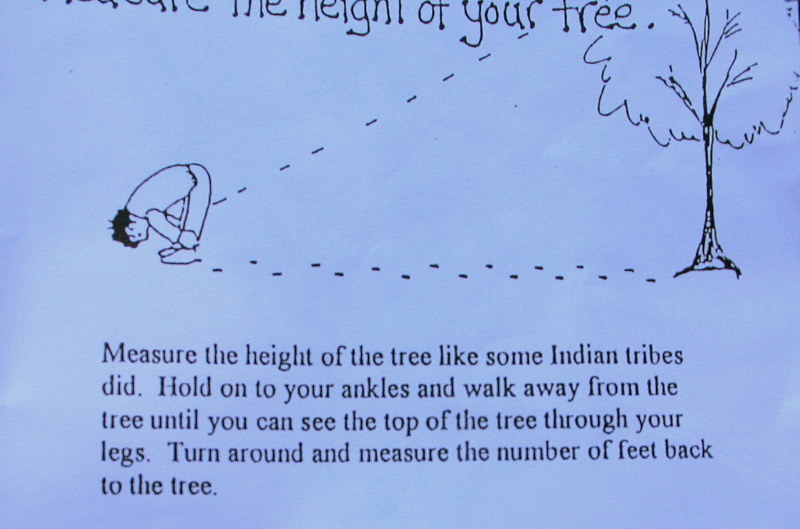 We've been spending a lot of time in the forest and walking the greenbelt looking for trees on our scavenger hunt list. As we discover trees and all they hold for us, one of the questions that came up was, How tall do you think that tree is ?