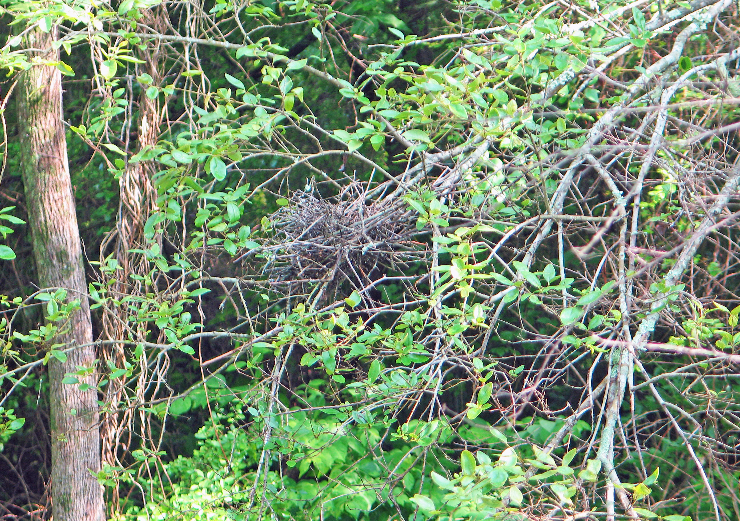 This morning, however, brought new realizations. Pistol creek and Sandy Springs over ran their banks last night. The blue heron nest that I've been watching for weeks has been severely damaged. The new arrivals have decreased by one. So now there are only three little faces to greet us.