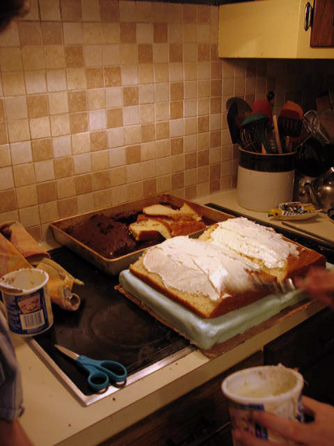 Now that changed things a bit. After a hurried trip to the store, the kitchen came alive with the making of our very own "bookish" cake creations.