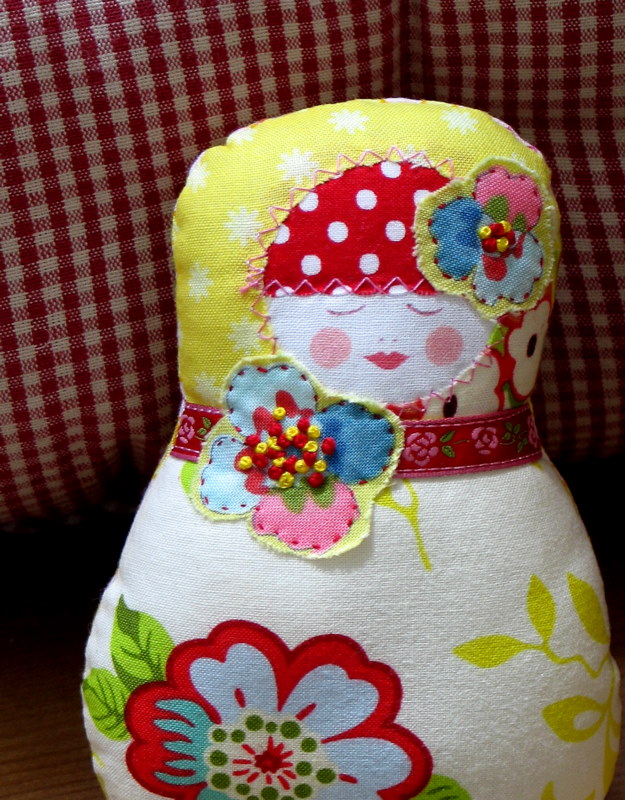 Yesterday in the mail came my lovely wished for matroyshka doll from the very talented Emily Moss over at Ravenhill. This cute little girl now has a place in my heart and my home. Thanks Emily, she's beautiful.