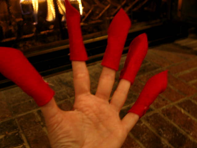 To play this game take a bead, felt ball,wax ball or anything small that can fit under the hat. Secretly, away from prying eyes, hide the ball under one of the hats and place all five hats on your fingers. One hat per finger.
