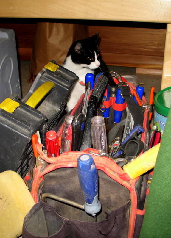 Handyman Marshal and little"O" started tearing things out.