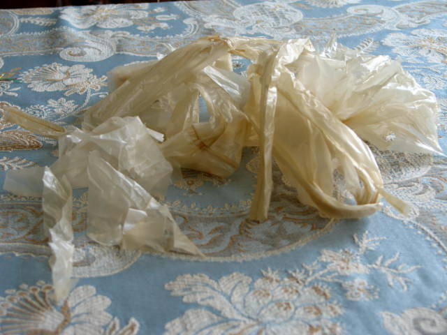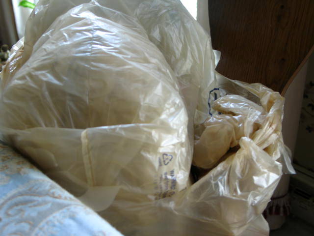 Now with all of the cold and dreary weather it's time for a little creativity. It's String a-long Monday and I'm re-bagging. I spent yesterday evening starting to make my grocery store plastic bag yarn for my next take along grocery store bag. The yarn takes a bit to make but the final product is so fun. I can hardly wait to show you.