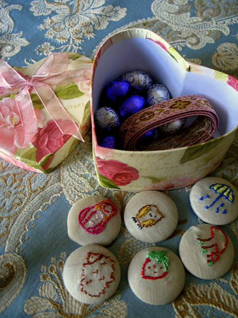 So off to Kristina in Sweden they go complete with chocolate, ribbons, and buttons all wrapped up in a heart box.