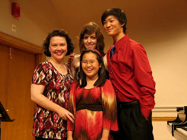 Mimi pictured here with friends Hao and Melissa who placed first in both solo piano and violin with their teacher Rachel Acuff. Hao studies with David Northington.