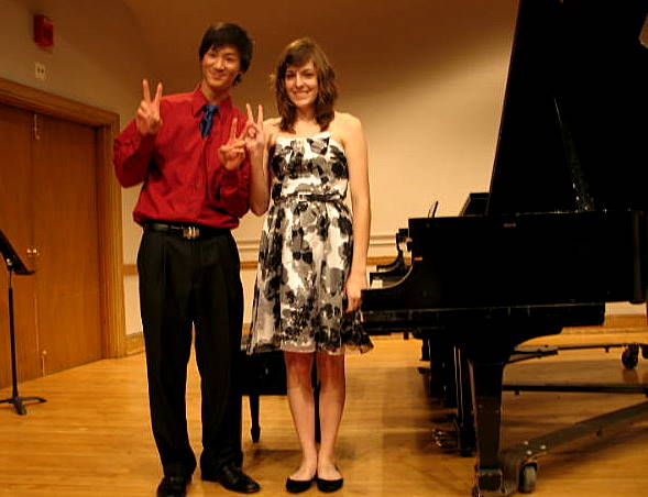 Because Mimi placed second in the Tennessee State Music Teachers Association Competition, piano concerto division, playing the Dminor Bach piano concerto. Good friend Hao, placed first playing Rach 2.