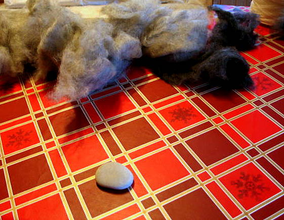 Calling her friend Lille-bit, who is a sheep farmer and felter, we gathered all of us, friends and family, to felt some stones and later made a piece of felted cloth. Today I thought I would give you a little look into our afternoon of felting fun.