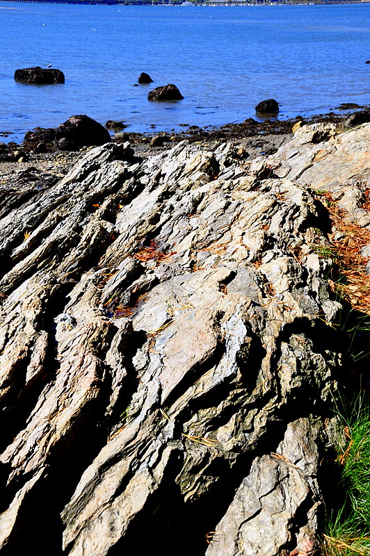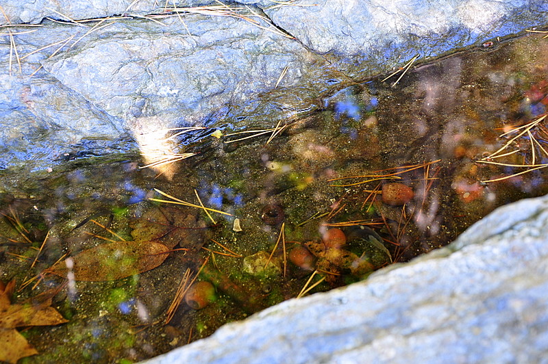 These lovely fall leaves and pine needles have found their way into a small crevice of water. A memory from the exiting tide.