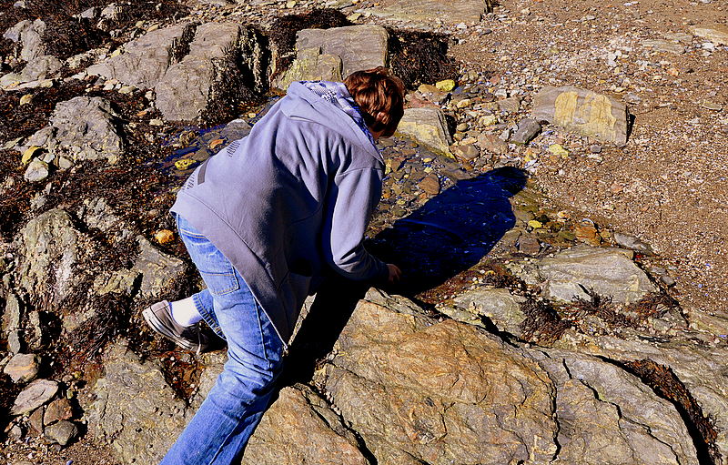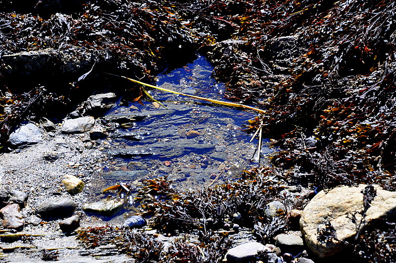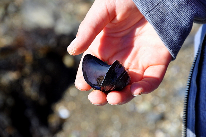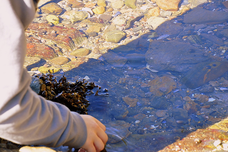 Though we have been to a variety of oceans and seas in his life, this was the first time that there were rocks on the beach, and pieces of hidden life within their crevices.
