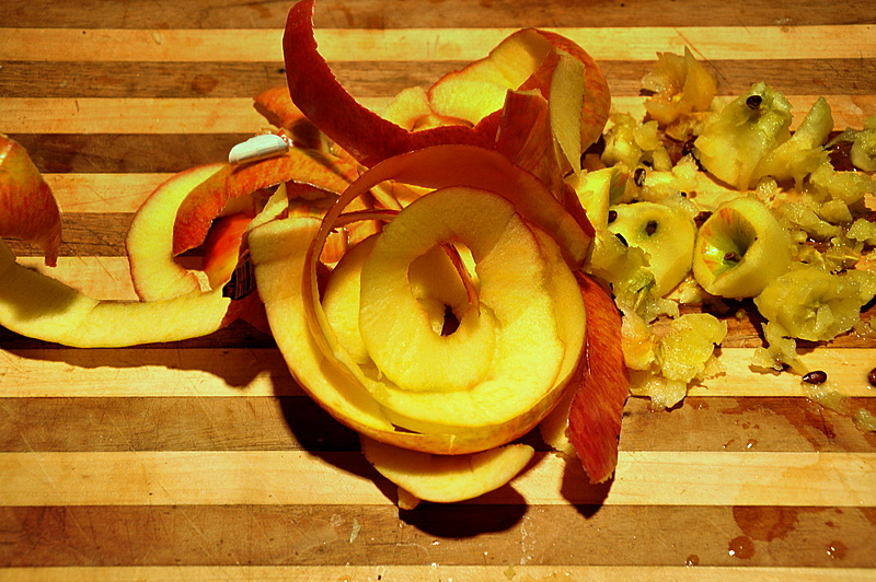 - Peel and scoop out the core of the apples. Be sure to soak the apples in cold water with a tbsp or so of lemon juice. This prevents them from turning brown.