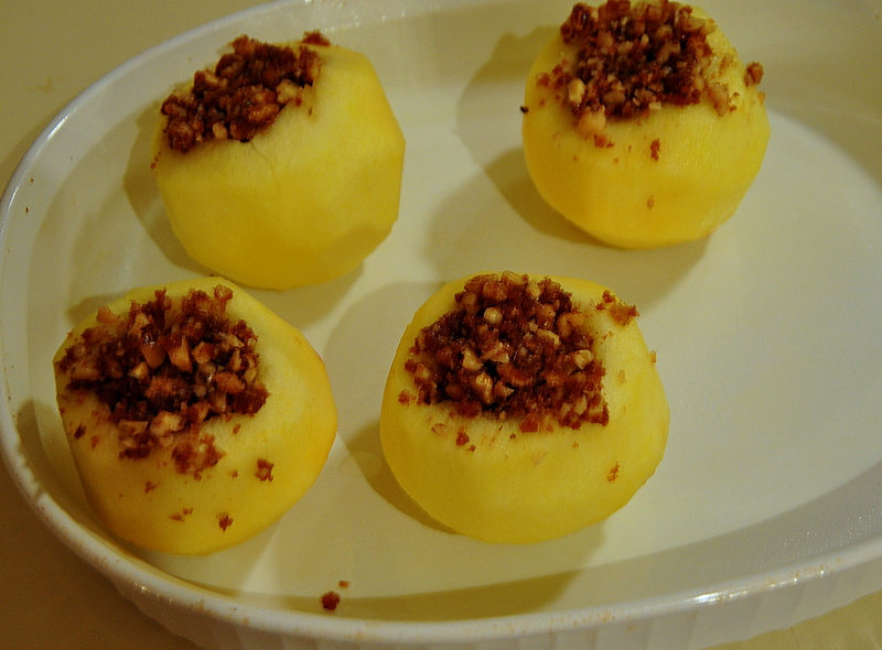 - Drain the apples of water and stuff with the nut mixture.