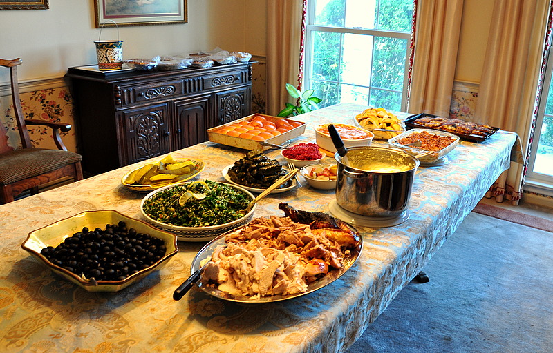 Since we were sitting at the "Rectangle Table" we placed the food on the dining-room table. I had to take this photo really quickly before the hordes came in for dinner.