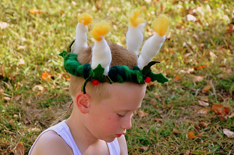 The one requirement I had when I became a mother was that every child in my house would have a St. Lucia crown if they wanted it. Inside the winter edition I put together a St. Lucia crown made of wool roving. Nice and soft for little ones who also would like to feel they are bringing light into the darkest time of the year.