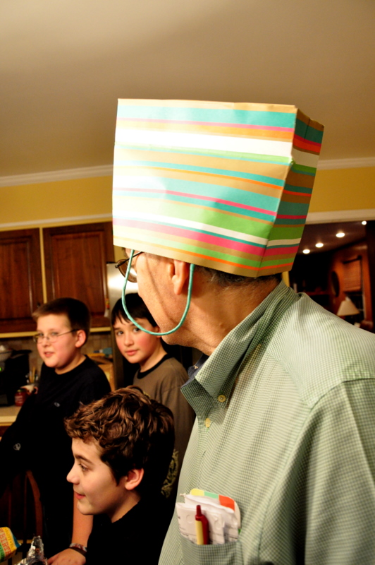 As the boys looked on, one can tell that the guy wearing the sack on his head was thoroughly proud of himself. "What are you looking at?" He would ask them.