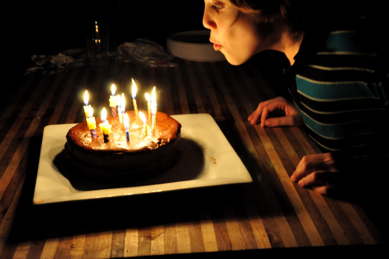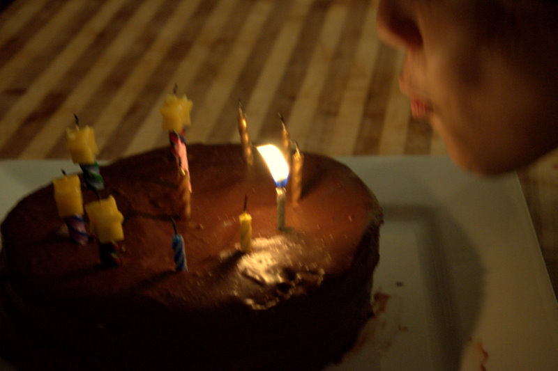 So now 12 year old "O" is blowing out the candles on his cake, that is until they lit up again.