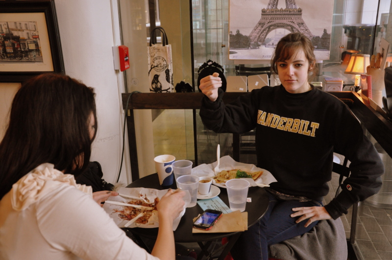 Zaina and I always get a crepe with nutella,strawberries,and bananas. We share one crepe not being able to wrap ourselves around a whole one. On this occasion,however, we should of each got our own because there was someone who kept mooching.
