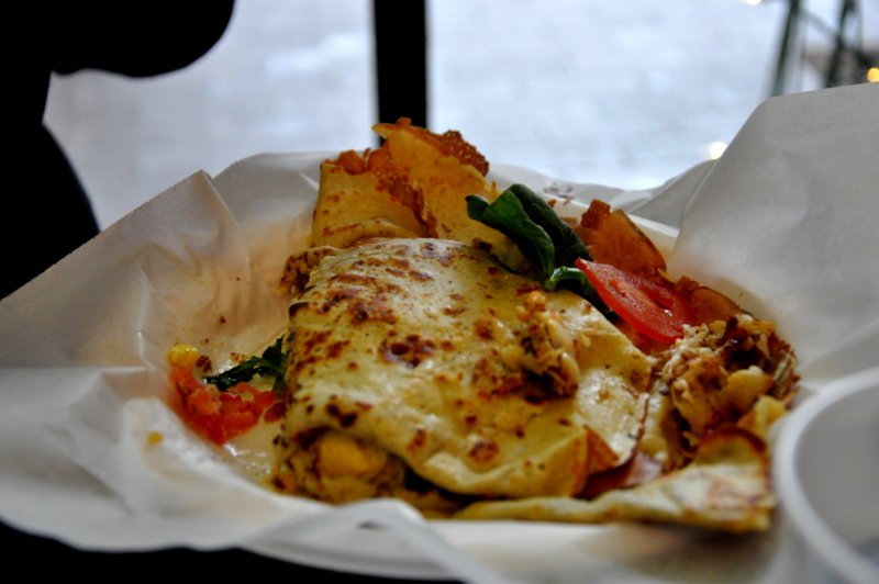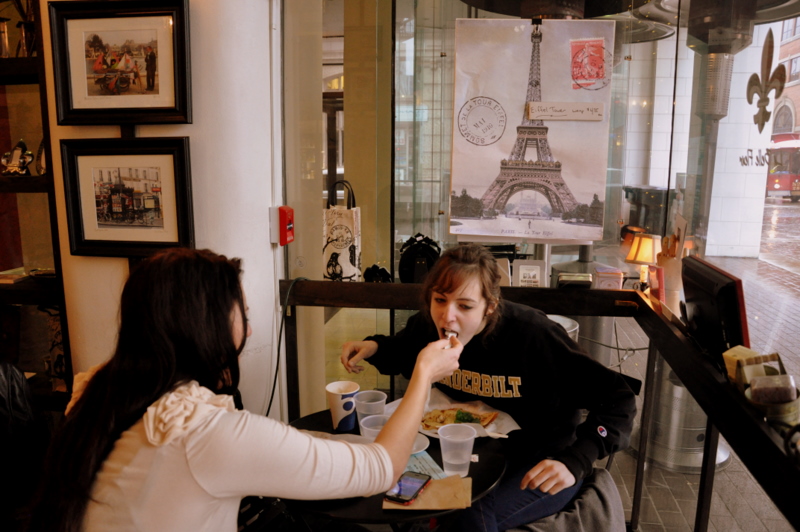You might remember this post where I confessed that my little family was crepe addicts. So it shouldn't be surprising to find us eating crepes on this side of the pond as well. Zuzu and I have taken to meeting once a week at the French Market for breakfast.