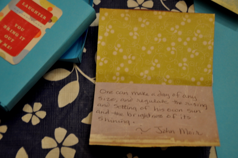 It was so relaxing to just sit there listening to music as I folded paper and thought about what I was going to write in these little books. Why not write our some of my favorite quotes which just happen to be a little motherly advice as well? said I.