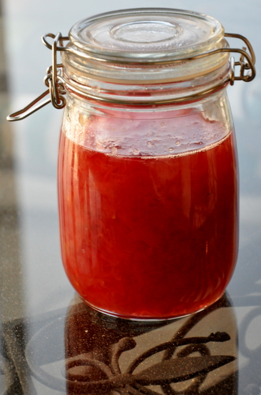 My zephrine rose which smells like raspberries is flourishing and so before the bugs get to it I thought I would pull a few blossoms off and make some rose jam.