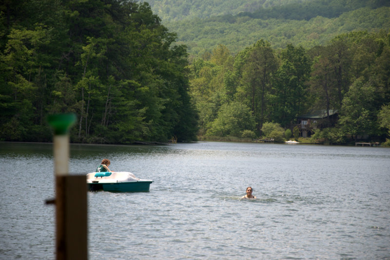 My Sweet girl Zuzu stayed behind to enjoy the dock view with me while we watched the first swim of the season happen.