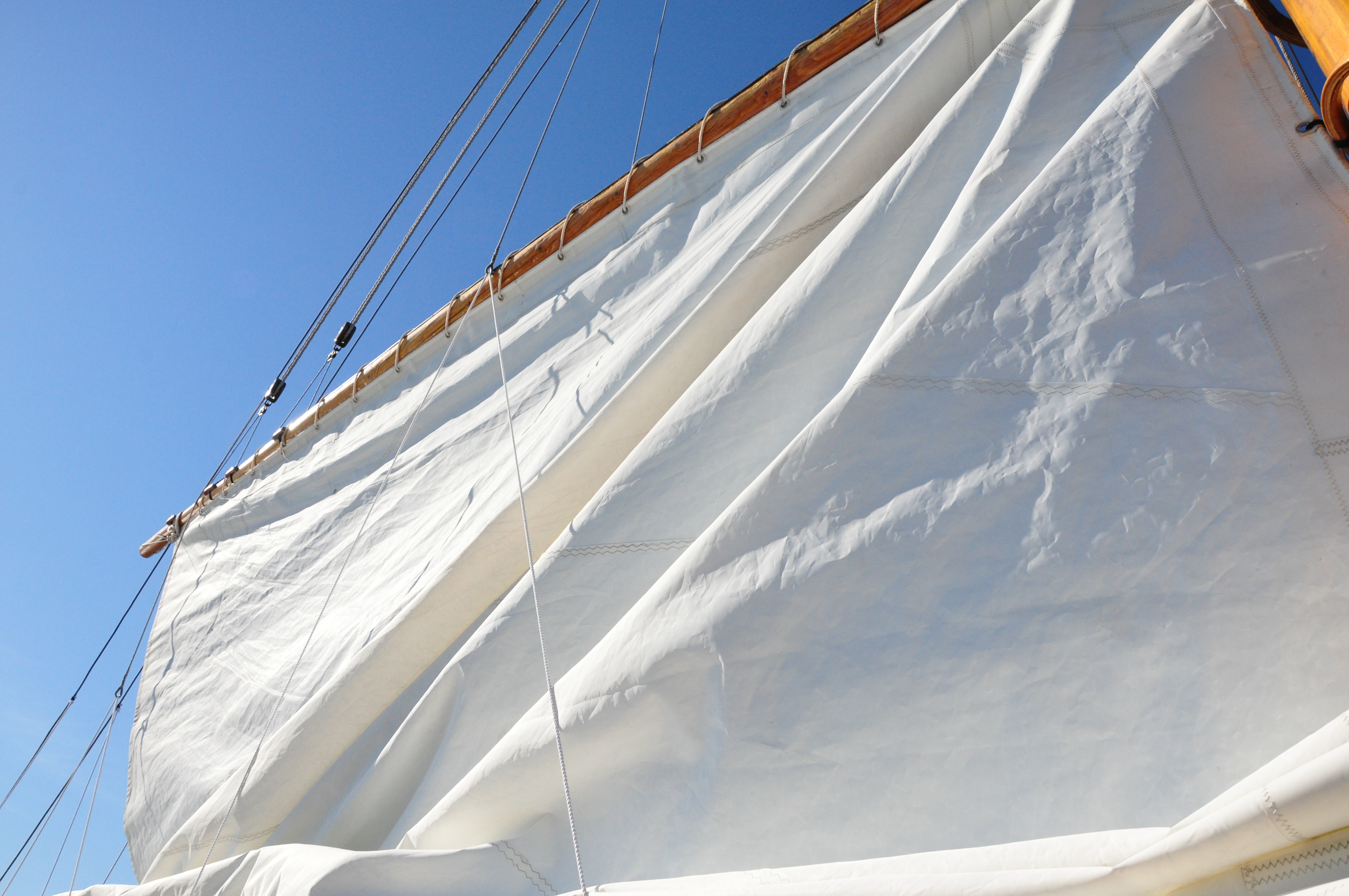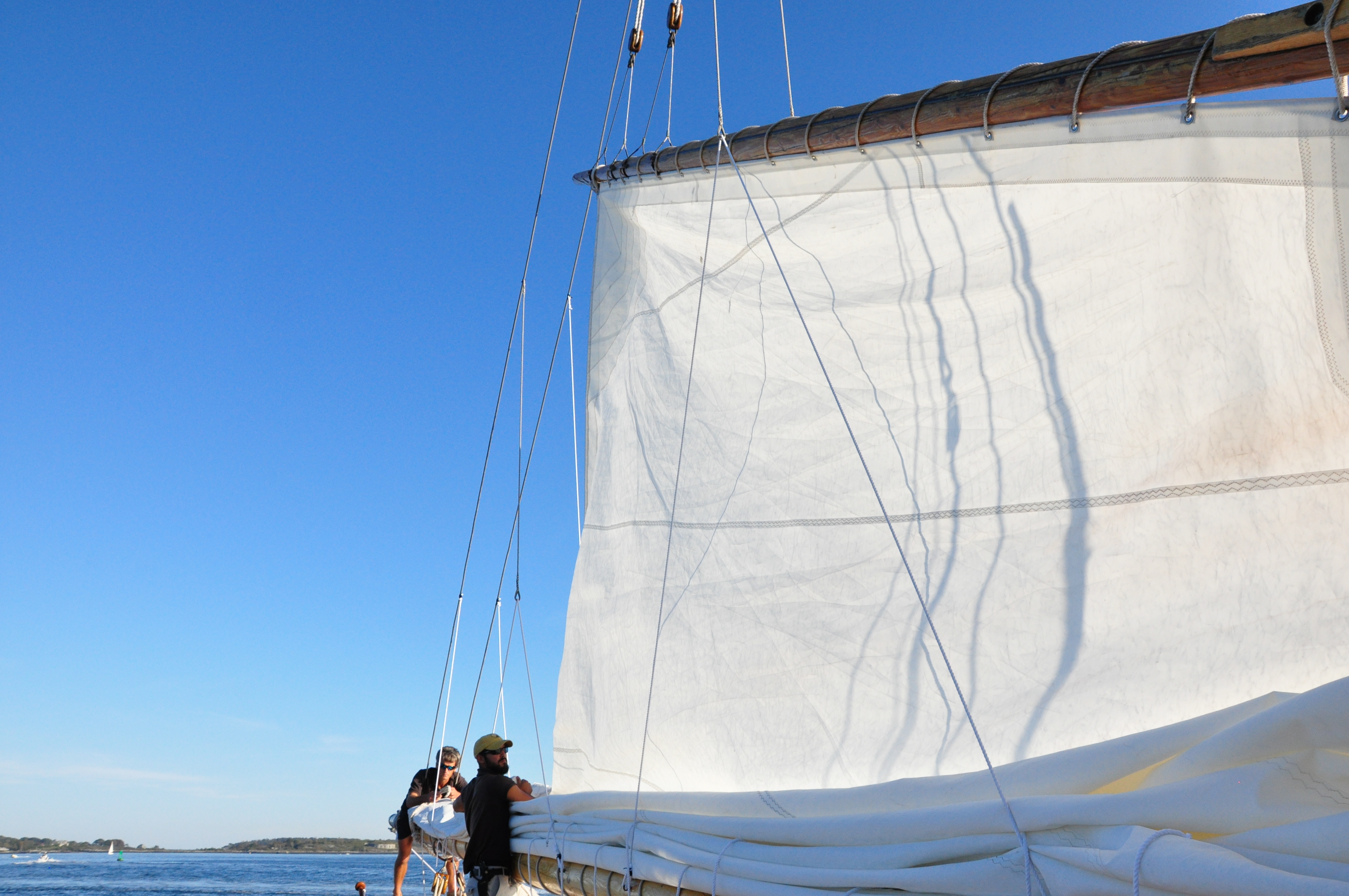 With the shadows getting long and the breeze quieting down, it was time to fold the sails as we headed back in to dock the ship.