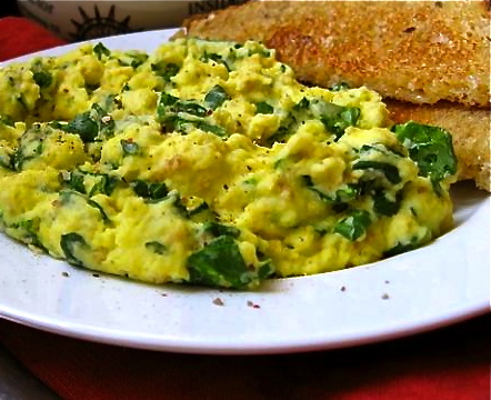 After many discussions within my own family about green eggs and how that could really happen, I sort of had to take a stab at it myself. Today's lunch is green eggs the momma version. No food coloring or other "tricks" just good old food. If you don't mind I'm skipping the ham part for a couple of reasons. One I don't like or eat ham and second it would be just too much for my 15/20 minute lunch.